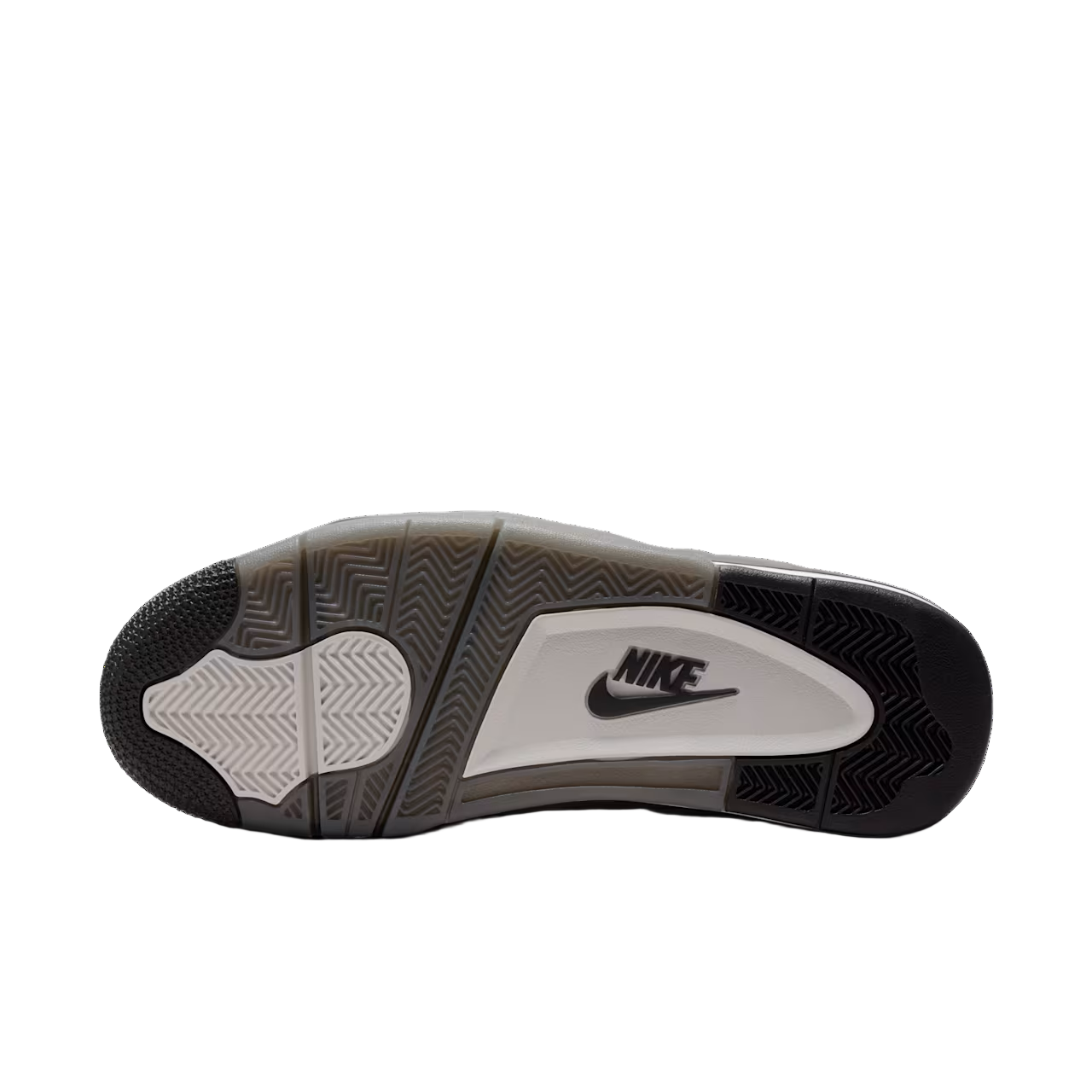 The Air Jordan 4 'Cave Stone' rolls out a smooth nubuck upper with black pops on the side panel netting, molded eyelets and collar lining. A jumpman emblem lands on the flight-branded tongue tag, while the nike air logo decorates the molded heel tab. A white-and-black foam midsole undergirds the classic design.