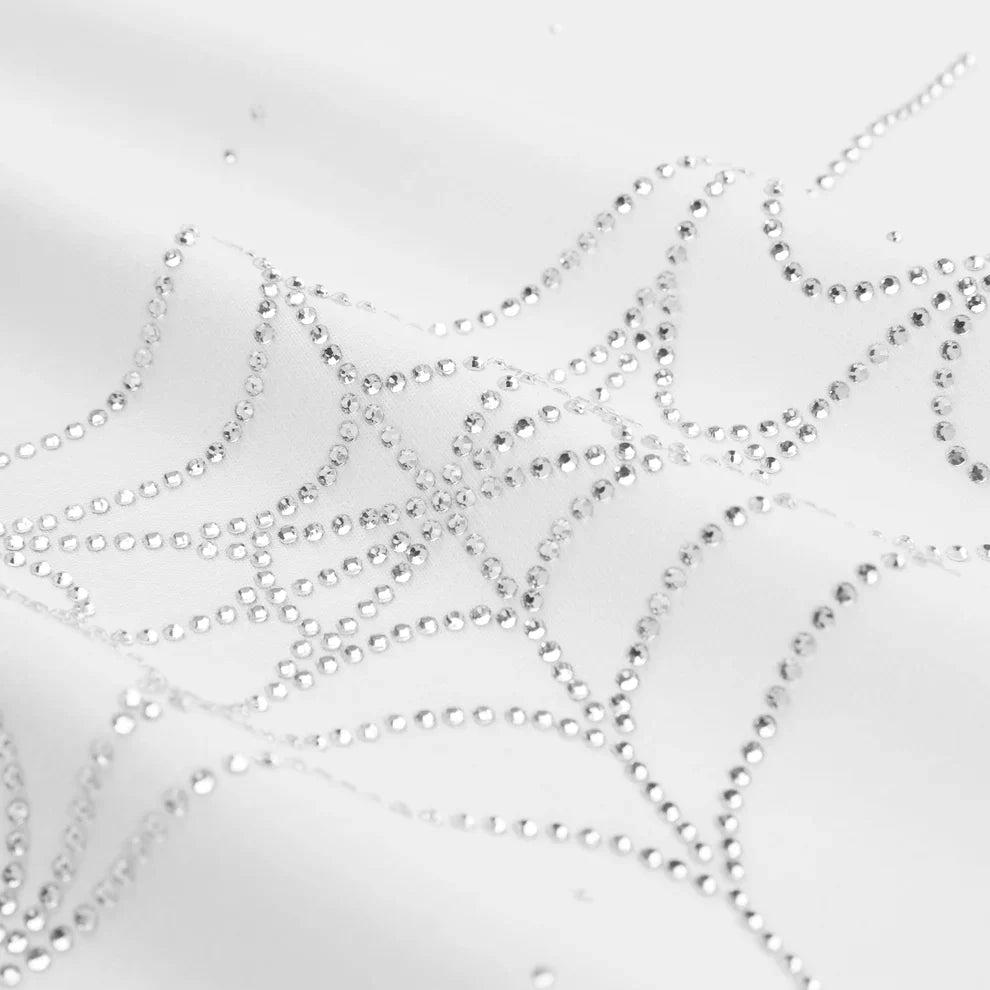 Go subtle — let the rhinestones deliver visual impact without competing elements.