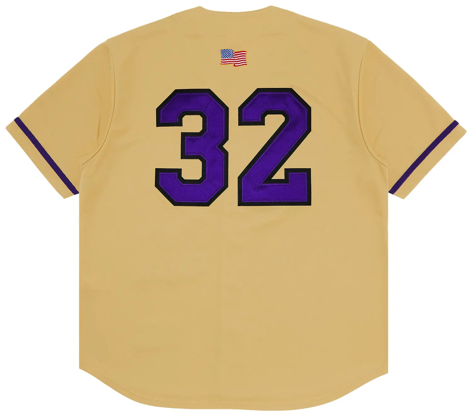 The Supreme Swords Baseball Jersey in 'Gold' is a standout piece from Supreme’s Fall/Winter 2025 collection, marrying classic athletic heritage with streetwear edge. Designed with bold embroidered sword graphics and contrast piping, this relaxed-fit jersey delivers an elevated take on vintage sportswear style — perfect for layering or wearing as a statement top.